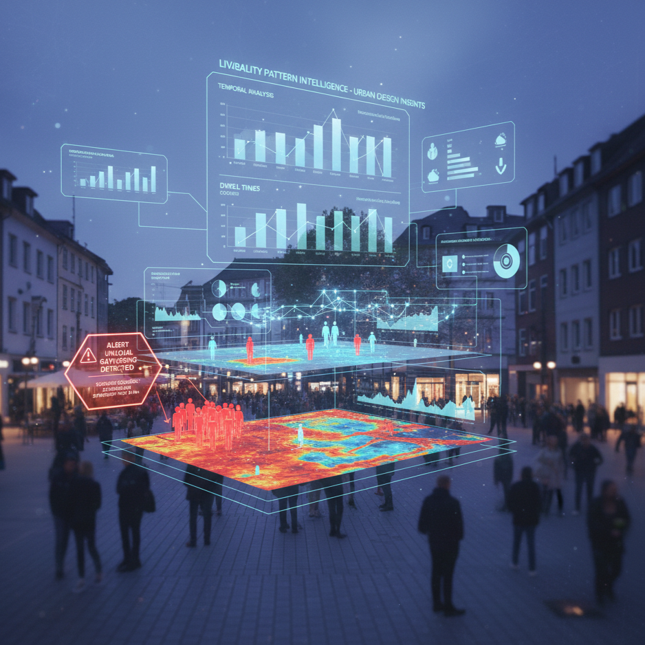 • Motion Analysis on edge devices creates live foot traffic heatmaps across public spaces and event venues, enabling security teams to identify dangerous density buildups before they become critical — without transmitting video to the cloud